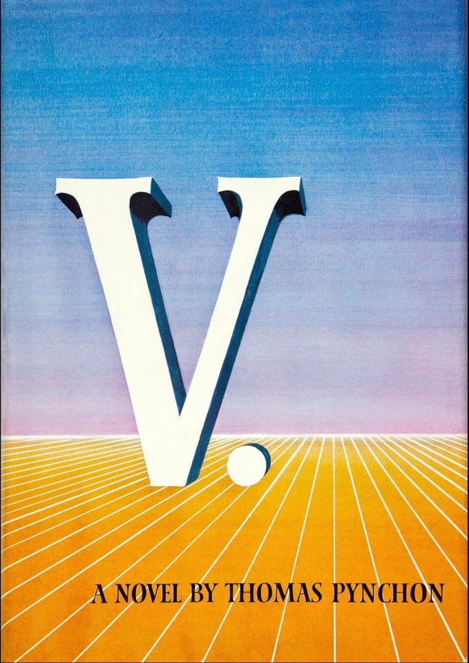 When I was 17 years old, I often wandered through the fiction racks in the downtown branch of the Carnegie library in my hometown, Cleveland. One day amid a display of the latest contemporary novels, I looked upon a thick and serious hardcover volume, with a single letter, V. , as its title. The letter stood monumental, upon a surrealistic plane of parallel lines converging toward a vanishing point, beneath an empty blue sky. In the foreground, in smaller letters below, the words proclaimed, A NOVEL BY THOMAS PYNCHON. Something about that image and title suited the world as I’d begun to see it, a mysterious and isolating landscape of endless searching and uncertainty. Like Pynchon’s characters in this, his first novel, my friends and I moved among bewildering scenarios with sensibilities that blended both hopefulness and paranoia. Like Pynchon’s Whole Sick Crew , we wandered amid the moral confusion that followed the chaos and tragedy of a World War. Underneath it all there lingered the frightening suspicion that everything that might have made sense to our parents was on the edge of coming apart.